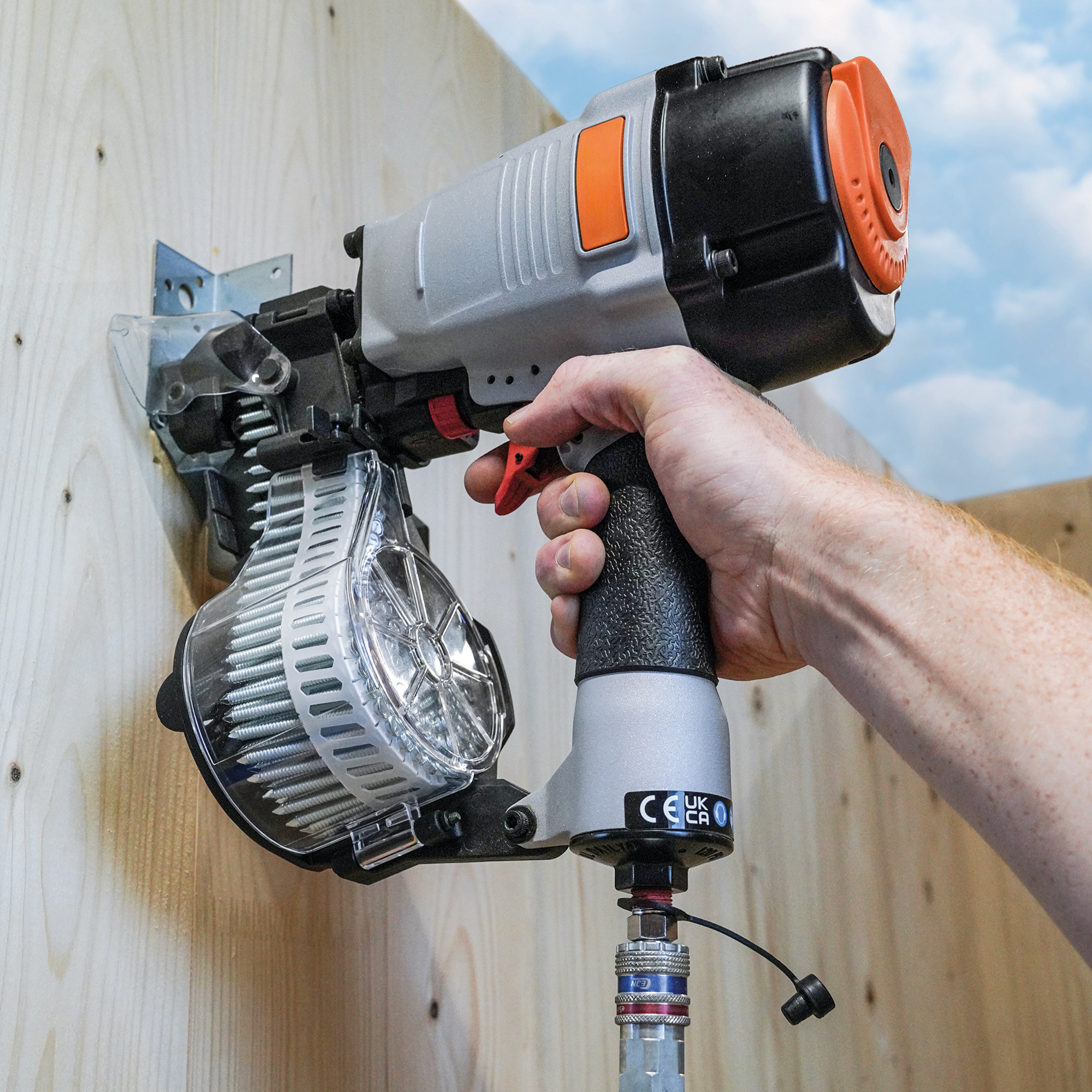 • Inserção precisa nas chapas pregadas, saída de ar orientável e tampa de proteção em plástico para um trabalho limpo e seguro