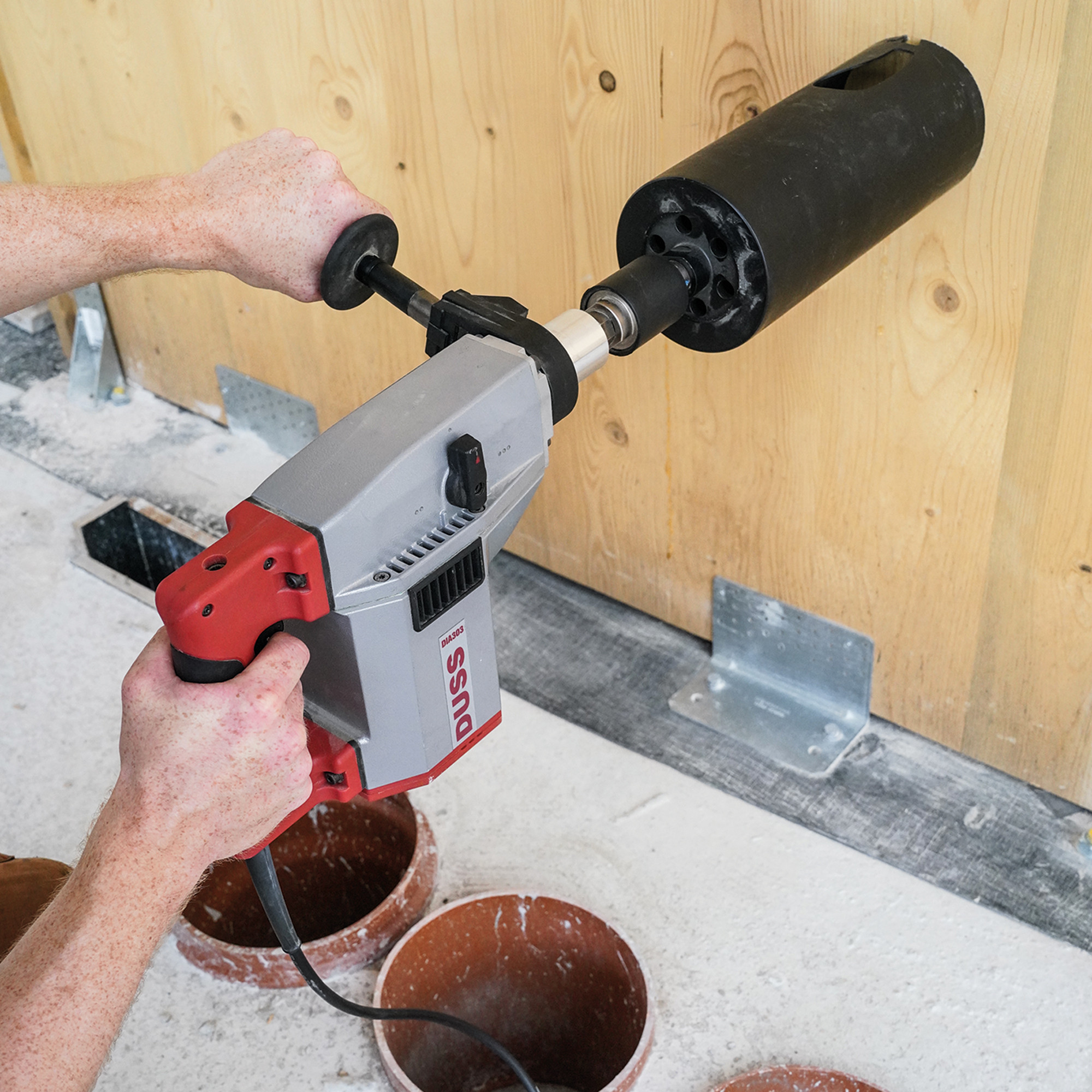 O berbequim para furação e perfurações a seco DUSS DIA 303 permite uma gama de furação de Ø40 a 322 mm, independentemente de ser utilizado manualmente sem apoio ou num suporte.