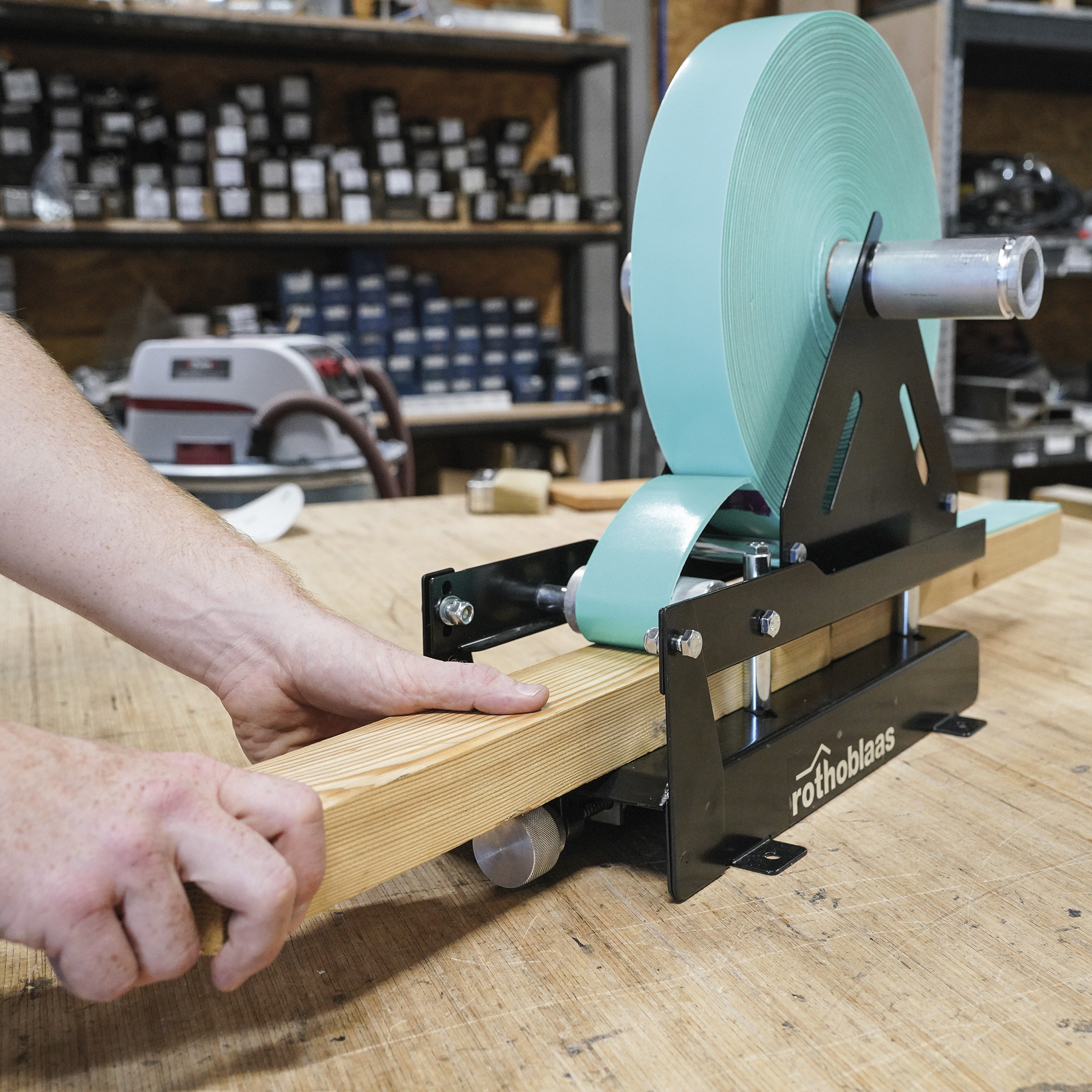 O dispositivo desbobinador LIZARD é concebido para assegurar uma aplicação prática, veloz e precisa da fita ponto prego.