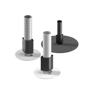 Os três modelos de manga, de betuminoso ardosiado, PVC e FPO/PP, permitem escolher o material mais adequado em função da membrana de impermeabilização existente.